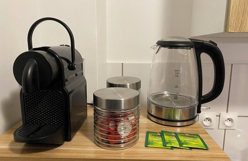 The kitchenette is equipped with a refrigerator, as well as an electric kettle, a microwave, and cookware. Enjoy the WiFi and TV. Bathroom amenities include a hair dryer, towels, and toilet paper. And because there's a washer and dryer, you can go a bit lighter on your packing. Other amenities at this 1-bedroom, 1-bathroom rental include bed sheets, a desk, an ironing board, and heating.