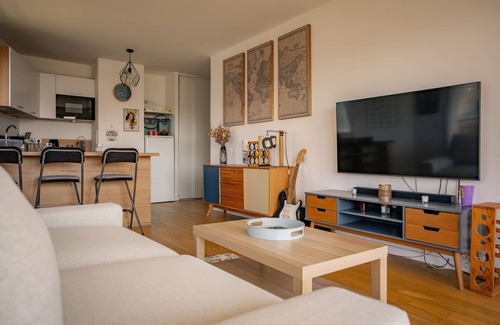 Welcome to your ‘Le Dock’ flat! Spacious and bright, it offers a large living room with a sofa bed, a bedroom with a double bed, a fully-equipped kitchen and a bathroom with shower and two balconies with lovely views.. Located in the heart of St-Ouen, you'll be close to shops and restaurants. The flat has excellent transport links (RER C, metro 13 and 14 nearby). You can easily get to Paris.
