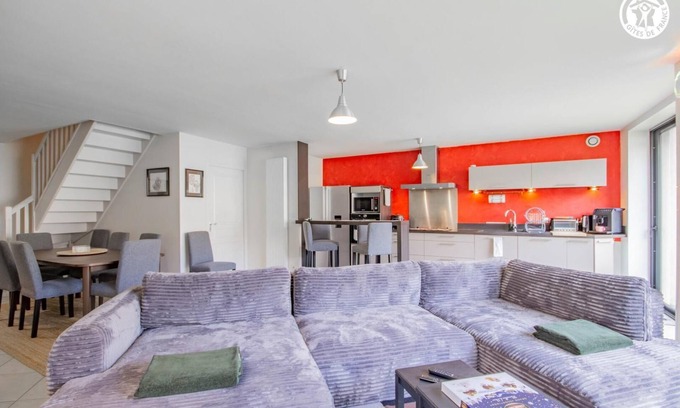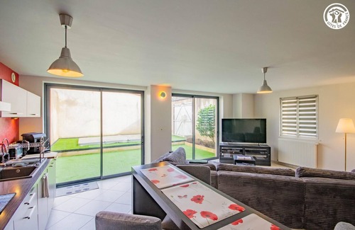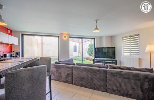 Passionate amateur golfers, Virginie & Jean-Marc open the doors of an authentic 19th century town house, fully restored with care, nestled in a quiet area on the edge of a small, quiet alley (one-way), in the heart of a peaceful residential area of the historic center, a stone's throw from the sumptuous Saint-Lazare cathedral built in the 12th century which dominates the city (a major work of "Cluniac art", in the Gothic-Roman style), as well as from all the shops & services. Equipped with a wealth of sports and leisure facilities, including the nearby Vallon lake (100 ha of "nature sports" with a water sports centre) and a bucolic golf course, backed by the vast wild forest of Planoise (a real "green lung" of the southern foothills of the Morvan massif, to explore during relaxing walks or mountain bike rides), in the heart of a preserved rural and natural setting of great beauty, this doubly thousand-year-old city, labelled "City of Art and History", has a literally exceptional heritage (Gallo-Roman, medieval and classical). Spacious, very comfortable gîte. Contemporary, neat and opulent spirit. Lots of style. Complete quality equipment. Ultra-cosy atmosphere. Cozy rooms nestled under the roofs in "cocoon" mode. Beautiful living room bathed in light opening onto a very pleasant intimate large courtyard-terrace "enclosed by walls" (not overlooked) flowered & planted, exposed and / or shaded (depending), including access to a private garage. Composition: Semi-detached house. Wifi (fiber). Gas central heating. Ground floor: living room-kitchen-lounge (TV Canal + / Netflix / Prime), 1 bedroom (double bed 160x200cm) with private bathroom (shower), separate toilet, laundry room. 1st floor: 3 bedrooms (each with 1 double bed 160x200cm), TV lounge bis on mezzanine landing, bathroom (shower), separate toilet, office (screen + keyboard + mouse). Enclosed courtyard-terrace (50m²) + garage (1 space / bicycle storage) + private parking. Mini supermarket 300m away. All amenities on site.