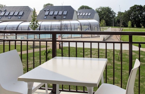 Resort "Le Domaine de la Corniche", 3 storeys, built in 2012. 110 apartments in the residence. On the outskirts, 650 m from the centre of Auberville, 3.6 km from the centre of Villers-sur-Mer, 1 km from the sea. For shared use: property 20'000 m2 (fenced), meadow, indoor pool (seasonal availability: 20.Jun. - 01.Oct.). Hot tub, boccia. In the complex: WiFi (all included), lift, washing machine, tumble dryer (for shared use, extra). Bread roll service and breakfast possible (extra). Parking (limited number of spaces). Shop 3.6 km, sandy beach "Villers-sur-Mer" 3.6 km. Please note: car-free holiday complex. The photograph shows a typical example. The holiday properties may differ in living space, floorplan, equipment and furnishing.