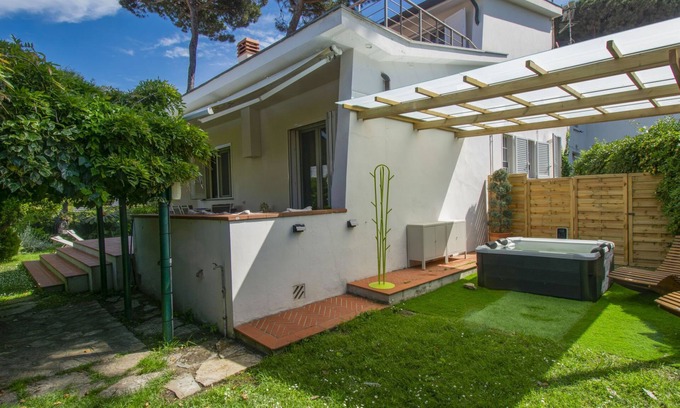 Very cosy, comfortable villa "Le Dune", 2 storeys, detached, built in 1960, renovated in 2021. 300 m from the centre of Tirrenia, in the residential district, 200 m from the sea. Private: natural garden 200 m2 (fenced). Hot tub, garden furniture, barbecue. In the house: air conditioning, washing machine, heating available only from 15.Nov. - 15.Apr.. Parking on the premises. Grocery, supermarket 400 m, restaurant 300 m, bakery 400 m, 10 minute walk to the centre, bus stop 100 m, sandy beach "200". Nearby attractions: Pisa 15 km, Firenze 90 km, Lucca 40 km. Please note: baby equipment on request (included). Main road close by 50 m from the property.