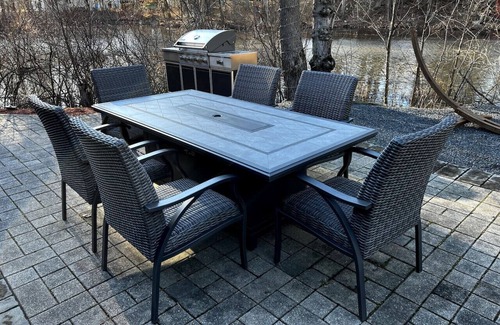 - Private access to the suite and outdoor areas, including a fire pit, grill, and patio furniture.