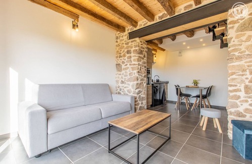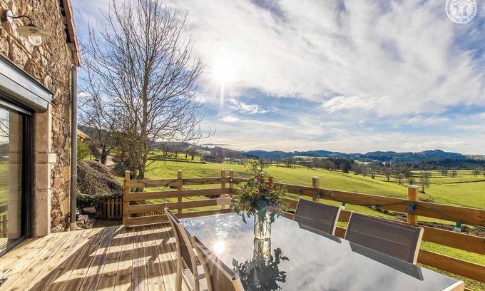 Jean-Paul & Patricia welcome you to a delightful authentic 19th century outbuilding of character, carefully and tastefully restored, located on a former agricultural estate made up of various buildings all perfectly rehabilitated, on the borders of a mini rural hamlet. Literally enchanting setting & site, nestled on the south-west facing hillside, overlooking a "balcony" over a sublime bocage plateau, with the famous peaceful Charolais cows as privileged close neighbors. Sumptuous panorama & landscapes. Total calm & tranquility, nestled on the immediate edge of meadows & forests, in the hollow of a magnificent rolling country cirque, nestled under the wooded ridges of the surrounding hills, magnificent preserved setting of greenery & nature leaning against the slopes of Mont Saint-Cyr, highest point of southern Burgundy (unique belvedere offering an exceptional panoramic view up to Mont-Blanc on a clear day!). Very comfortable gîte with modern "compact" architecture. Warm contemporary character mixing Nordic & industrial influences combined with careful restoration (original stone beams & walls), enhanced by the conservation of an old traditional bread oven (visible in a "showcase" in the gîte). Cocooning & cozy atmosphere. Very charming. Pleasant large panoramic balcony terrace. Magical bonus, you have a sheltered outdoor spa opening onto a postcard landscape! Composition: Access to the property via 400m of dirt road suitable for vehicles. Detached house adjoining the owners' house and a second gîte (total independence without vis-à-vis / access to the gîte by staircase going down the slope from the parking courtyard). Wifi (fiber). Electric heating. Raised ground floor: kitchen-living room-lounge (double sofa bed 140x190cm). 1st floor: 1 bedroom (double bed 140x190cm), bathroom (shower/wc). Balcony-terrace + sheltered spa (4 places) + micro garden + bicycle storage + private parking. Shops 9 km. Supermarket 14 km.