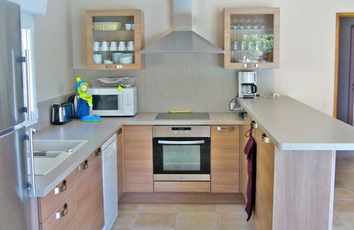 Boom in the Hill in a dominant position on a plot of 1200 m², 400 m from the Sainte Croix Lake with beautiful view on the Lake and close to all sporting and tourist activities contemporary house full foot terraced unopposed with another gite. Terrace pergola with garden, overlooking the private pool (11 x 5 x 1, 50 prof at salt electrolysis secured by alarm and barrier), Garden teak, gas barbecue. WIFI. Private parking in front of the cottage. Ground floor: Entrance Hall. WC with wash basin, laundry. Kitchen with bar, open very well arranged with quality equipment on large living room with flat screen TV, CD and DVD player. Two bedrooms with each a double bed (160cm) and two bedrooms each with two single beds (90cm). Bathroom bath + shower room adjoining to the parental bedroom with walk-in shower. Two separate wc with wash basin. Only accepted dog.