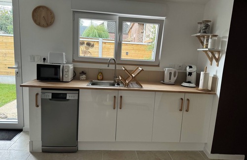 While you're here, you can enjoy all the comforts of home and more, including a refrigerator and an oven, as well as a stovetop and a dishwasher. Other amenities include towels, an electric kettle, kitchenware and utensils, and a toaster.