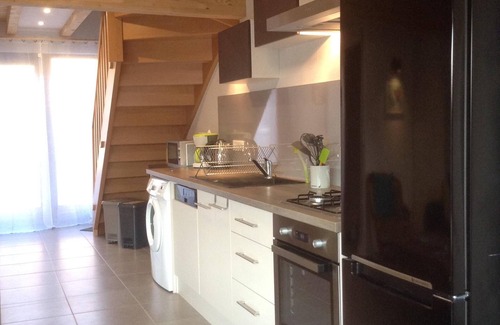 The Gitele is a cozy accommodation in Châtenois in the center of Alsace. Châtenois is a village at the foot of the Haut-Koenigsbourg Castle and located on the wine route. Its position in the Center Alsace, gives the village an easy access to the rest of the region. Located between Strasbourg and Mulhouse, you are at the heart of Alsatian culture! A parking space is reserved for you. It is large and on the same level as the ground floor just in front of the entrance allowing people in wheelchairs to enter the housing. The ground floor consists of a living room including the kitchen (gas hob, fridge, oven, dishwasher, washing machine, microwave ...), the living room and dining room with access the terrace, but also a room with an electric bed adjustable in height and which inclines to the head and feet and a closet with retractable rod. The bathroom is equipped with a walk-in shower, a sink and grab bars for people with reduced mobility. The floor consists of 2 bedrooms and a bathroom with bathtub.