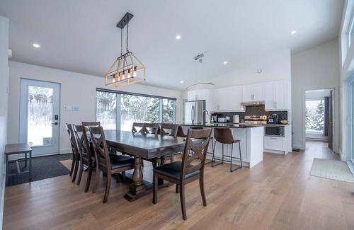 Chalet Le Grand Chartier is a stunning rental chalet located in Chartierville, offering a beautiful view of the surrounding forest and mountains. It is the perfect place for a family or friends' getaway, offering a peaceful and natural setting.