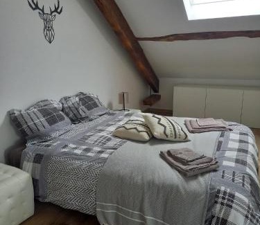 Le grenier de Charlotte is located in Libin, just 24 miles from The Feudal Castle and 24 miles from Château fort de Bouillon. This property offers access to a terrace and free private parking. Domain of the Caves of Han is 14 miles from the apartment and Château Royal d'Ardenne is 20 miles away. With free Wifi, this 3-bedroom apartment provides a flat-screen TV, a washing machine, and a fully equipped kitchen with a dishwasher and oven. Towels and bed linen are featured in the apartment. The accommodation is non-smoking. Anseremme Train Station is 31 miles from the apartment, while Euro Space Center is 2.4 miles away.