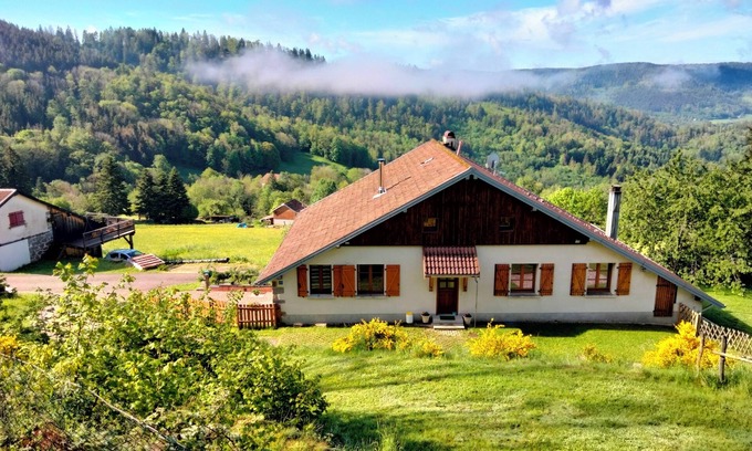 Welcome to our cottage "Le Grenier du Roc". We have just renovated a large space for you to enjoy the nature and the freedom in our invigorating mountains. You can get glorious views from the inside or outside of hour home. At any season,this is an ideal getaway. In summer,you will rest on the terrace or enjoy the coolness inside thanks to the very thick walls (70 cm). In winter, you will hike with snowshoes or ski on site or in the nearby stations. We made special efforts for you to feel good here : noble materials, family rooms,library room,...Spôrts, leisure,culture and local food are available at less than one hour around.
