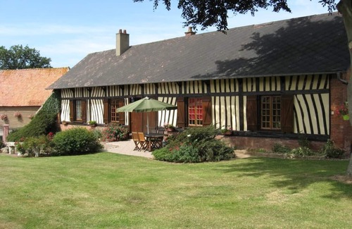 Cottage with large garden, garden furniture, barbecue and 5 lounges: entered the living room with fireplace, living room, TV, small games room, equipped kitchen, 2 bedrooms (1 double bed 140x190cm), 1 bedroom (1 double bed 1 person 90x190cm), wc, spacious bathroom. Indoor and outdoor games. Electricity and bed linen included (beds made). Central heating: 13/day. Fixed rate possible. More that a gite, Thierry and Claudine entrust you their "little corner of paradise", with views of the slopes in gentle curves of the Pays de Bray, at the source of the Eaulne. Green Avenue runs along the Valley and allows you to hiking to Dieppe or Neufchatel. Gite with garden closed.