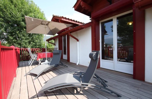 Detached house located in the center of St-Jean-Pied-de-Port, 50m from the shops (various shops, supermarket on site). Ground floor: entrance, 2 bedrooms (1 double bed, 2 single beds), shower room, wc. Upstairs: fitted kitchen area (microwave, fridge-freezer, ceramic hob, dishwasher), living room, lounge area opening onto a wooden terrace with garden furniture. Reversible air conditioning heating included. Beds made on arrival, towels extra. Internet connection. Garden enclosed by electric gate, parking. Garden furniture, barbecue, deckchairs. Leisure activities (swimming pool, tennis...) and shops are on site (50m). The citadel of St Jean-Pied-de-Port and its shops, restaurants... are 800m away.