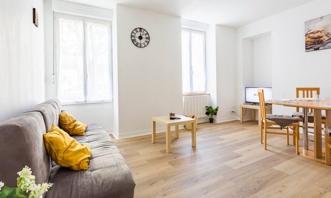 The flat is fully furnished to ensure a pleasant stay. Bed linen is provided (sheets, towels, bathrobes, slippers). The kitchen is fully equipped with a complimentary hot breakfast bar. Bathroom with shower. You will have access to high speed wifi to work on your business files or to explore the good places of the city. The flat is located in a very quiet residence on the ground floor. You will love the charm of the old wooden floors and the brightness of the large windows.
