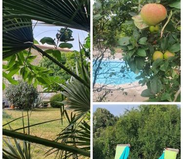 Housed in a historic building, the recently renovated Le Jardin des Bosquets Gite offers accommodations with a seasonal outdoor swimming pool and free Wifi. With free private parking, the property is 30 miles from La Rochelle Train Station and 30 miles from L'Espace Encan. Exhibition Park of La Rochelle is 30 miles away and Mytiliculture Museum is 23 miles from the vacation home. Offering a terrace and pool views, the spacious vacation home includes 3 bedrooms, a living room, flat-screen TV, an equipped kitchen, and 3 bathrooms with a walk-in shower. Towels and bed linen are offered in the vacation home. The property has an outdoor dining area. Guests can make the most of the warm weather with the property's barbecue facilities. Guests can also relax in the garden. Niort Train Station is 26 miles from the vacation home, while La Rochelle Grosse-Horloge is 30 miles from the property. La Rochelle - Île de Ré Airport is 31 miles away.