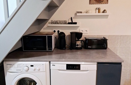 Le Jarrier Gite has a very well equipped kitchen recently updated (February 2024), including fridge freezer, dishwasher, washing machine, microwave, hand blender, 4 slice toaster and Krups Dolce Gusto and standard filter coffee machines.