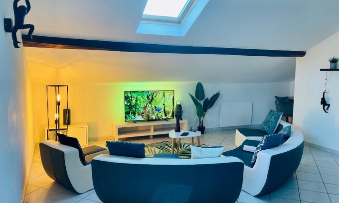 Le Jungle is located in Noisseville, just 5.7 miles from Parc des Expositions de Metz and 22 miles from Thionville Train Station. With free private parking, the property is 5.1 miles from Centre Pompidou-Metz and 5.6 miles from Metz Train Station. Stade Saint-Symphorien is 6.2 miles from the apartment. With free Wifi, this 1-bedroom apartment features a flat-screen TV and a fully equipped kitchen with a fridge. The accommodation is non-smoking. There is an on-site bar. Metz Cathedral is 5.4 miles from the apartment, while Metz Courthouse is 6 miles from the property. Metz-Nancy-Lorraine Airport is 13 miles away.