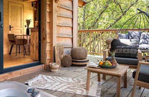 Treat yourself to a unique experience surrounded by nature. Enjoy a cozy bedroom, a bathroom with a large walk-in shower, and a high-end private spa for moments of absolute relaxation!