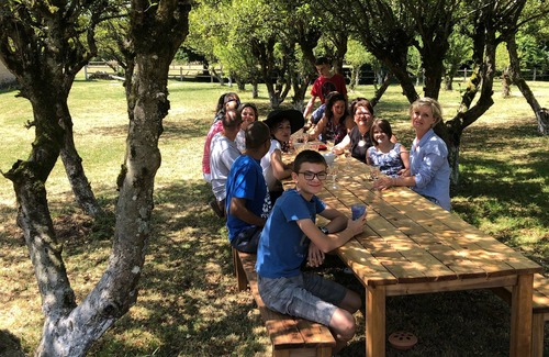 Located in the east wing of the manor, opening onto the apple orchard, in a 2 hectare wooded park, relaxation, rest and well-being.