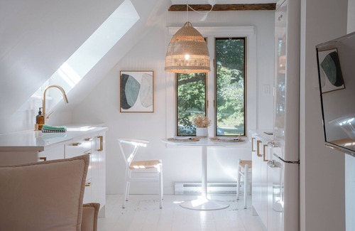 Located 1.5 hours from Montreal, you couldn’t be better situated to escape your daily routine. Explore the local cross-country skiing, biking, snowshoeing, and hiking trails. Enjoy a well-deserved swim at Lake Massawippi, just a few minutes' drive from the house. Working remotely? High-speed Fiber Wifi makes it easy. On vacation? Relax with a good book on the small couch in the studio’s living space. Prepare a delicious meal for two in a fully equipped kitchen.