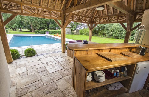 At Le Manoir d'Elise, you'll find an array of luxurious amenities designed to elevate your wedding experience. The property features a fully equipped kitchen, two spacious living areas with inviting fireplaces, and nine tastefully decorated bedrooms—most with private bathrooms—for ultimate comfort. The expansive dining room can accommodate up to 18 guests, making it ideal for rehearsal dinners or post-wedding brunches. Guests can also revel in leisure activities, such as soaking in the heated outdoor pool or hosting barbecues in the charming garden lounge, ensuring a joyous and memorable stay for everyone involved.