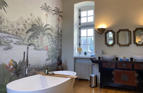 Le Manoir de la Fieffe offers 3 accommodations with complimentary bottled water and coffee/tea makers. Each accommodation is individually furnished and decorated. Beds feature premium bedding. A pillow menu is available. 32-inch flat-screen televisions come with digital channels. Bathrooms include separate bathtubs and showers with deep soaking bathtubs, slippers, designer toiletries, and complimentary toiletries.