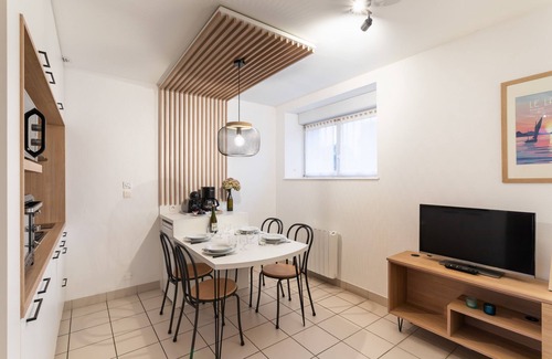 Cocoonr agency offers this charming 40 m² duplex flat with wifi, which can accommodate up to 4 people, is available to rent in Lamballe-Armor. It comprises a living room with fitted kitchen, 2 bedrooms upstairs and a bathroom. Cleaning is included in the rental price and 4-star hotel-quality linen is provided (sheets, towels, tea towels). Your bed will be made up on arrival.