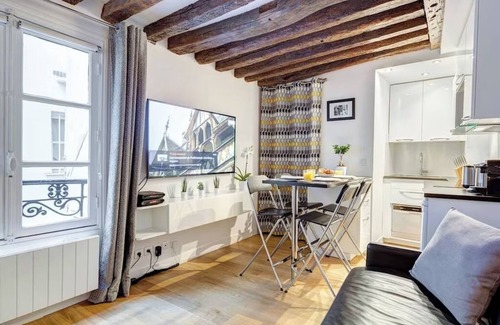 Situated in the city center, this welcoming apartment brings all of Paris within your reach. Rue de Rivoli is just steps away while Notre-Dame is an easy 13-minute walk away. Check out other neighborhoods and see more of Paris by hopping on a metro at either Saint-Paul Station, a short 5-minute walk away, or Hôtel de Ville Metro Station, 7 minutes away.