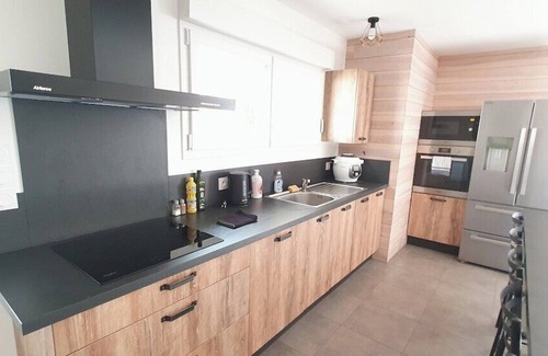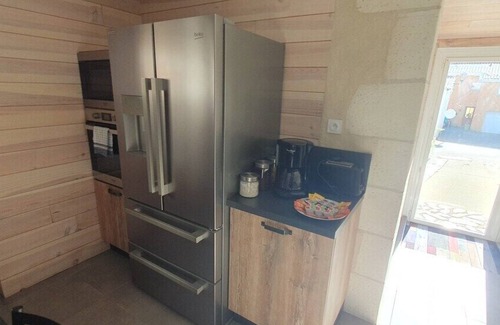 -> A large dining room and a fully equipped kitchen (hob, extractor fan, microwave, oven, American-style fridge, dishwasher, toaster, filter coffee maker and Senseo coffee machine, kettle…). Everything you need to cook is available. A welcome kit is provided with tea, coffee, sugar, and biscuits.