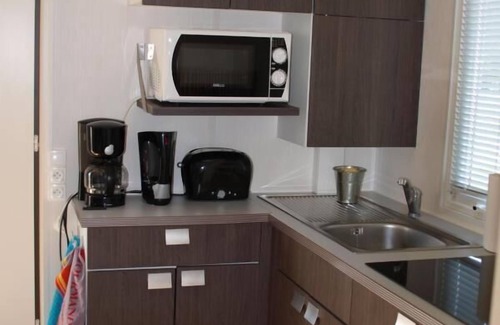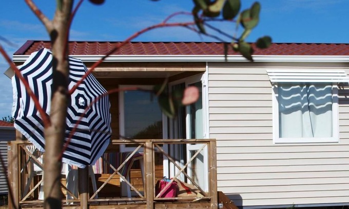 This is not a holiday club like the others. Of course, you can enjoy all the activities on site and all the entertainment. Swimming pool, tennis, pétanque, ball games... But in addition, here, we offer you a privileged environment. Walks with family or friends along the Adour river, hiking trails on foot or by bike, observing the flora and fauna... to discover the nature nearby. Without forgetting the comfort because the mobile homes are fully equipped to make your life easier. An extraordinary holiday just for you! In a park of 20 chalets and mobile homes, this mobile home offers you a living room with equipped kitchenette, 2 bedrooms (1 double bed and 2 single beds), shower room and toilet. Private terrace with garden furniture. Swimming pool, tennis, hiking... to consume without moderation! Shared laundry room with washing machine. Dishwasher sinks. WIFI. - Swimming pool (14m x 8m, depth: from 60 cm to 1.55m) secured by a barrier - Multi-sports ground for ball games: volleyball, badminton, tennis - Boules pitch - An electric charging station is installed. (additional service) For more than one animal, please contact us.