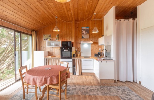 You will benefit from reversible air conditioning, a bright living room with a fitted kitchen area, a spacious bedroom equipped with a 160 cm bed and a 90 cm bed, a bathroom, and separate toilets. Facing the olive trees, you can enjoy the outdoors thanks to a wooden terrace, a plancha grill, and relaxing seats.