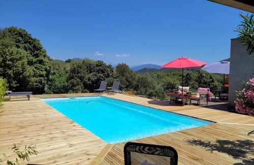 "Le Milan d'Or": family accommodation for 12 people on the edge of the maquis has 6 Bedrooms , 2 Bathrooms, and max occupancy of 12 people. The minimum rental for this property is 1 nights, but this can change depending on the season you plan on staying. Previous guests have given good rated it, and VRBO labeled it a top-rated House because of the excellent services rendered by the owner or manager of this House, and has consistently provided great experiences for their guests. Most families or guests that use it recommend it to their friends and some of them are repeat guests. House has a friendly neighborhood, and the Sartene has interesting places to visit. If you want to learn more about the House in Sartene, such as places to visit and things to do nearby, you can check below to learn more.