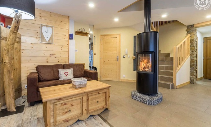 Gîte located in a house including 1 other gîte for 6 people. Shared entrance. Ground floor: living room-kitchen with wood stove (wood included), 1 bedroom for 2 people (1 bed 160x200cm). Shower room (shower + WC) accessible to people with reduced mobility. Upstairs: 2 bedrooms (4 single bunk beds / 1 double bed). Shower room (integrated WC) + separate WC. Private terrace with view of the valley. Washing machine and dryer located in a shared laundry room. Private ski room + electric boot dryer. Bicycle room. Sledges available. Shared wellness area at an additional cost and by reservation with sauna, bar, home cinema and equipped covered terrace (contact the owners). Charging point for electric vehicles (charge charge required) Rental Sunday - Sunday in High Winter Season Contemporary House situated 3 km from the slopes of the vast ski area of Valcenis-Vanoise and 5 km of cross-country skiing tracks (free shuttle service in high season). Charming typical village nestled on hillside prairies and forests at the gates of the National Park of la Vanoise. Quiet residential hamlet. Cottage offering a very good comfort. Nice private terrace. Beautiful view over the massif.