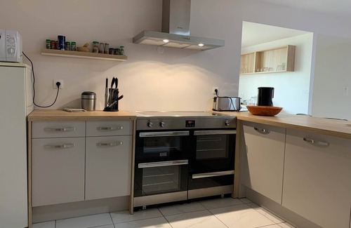 On the kitchen side, you will find a large, fully equipped kitchen (oven, hotplates, dishwasher, complete crockery, etc.) ideal for preparing good meals, which you can enjoy in the friendly dining room .