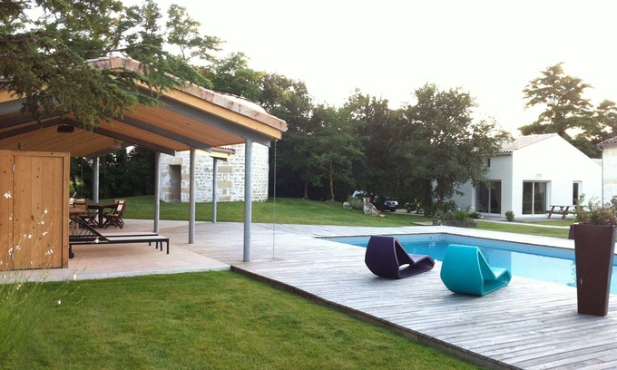 Located in a quiet area, on a lanscaped garden of 1 ha with an old mill. Secured and heated pool (from April to October).