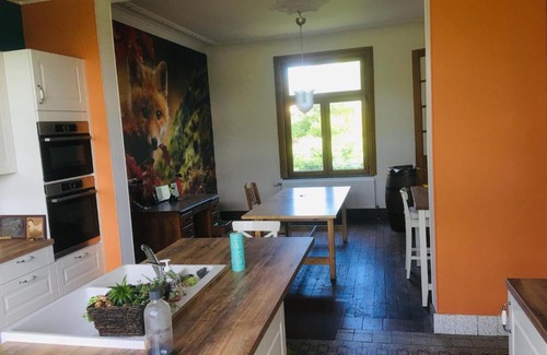 Featuring barbecue facilities, Le nichoir d’hirondelles provides accommodations in Tintigny. This property offers access to a balcony, table tennis, free private parking, and free Wifi. The accommodation offers a shared kitchen and full-day security for guests. Offering a terrace and river views, the spacious vacation home includes 6 bedrooms, a living room, cable flat-screen TV, an equipped kitchen, and 2 bathrooms with a bath and a shower. Towels and bed linen are offered in the vacation home. There's also a seating area and a fireplace. For guests with children, the vacation home features a baby safety gate and a children's playground. After a day of skiing, cycling, or hiking, guests can relax in the garden or the shared lounge area. Château fort de Bouillon is 26 miles from Le nichoir d’hirondelles.