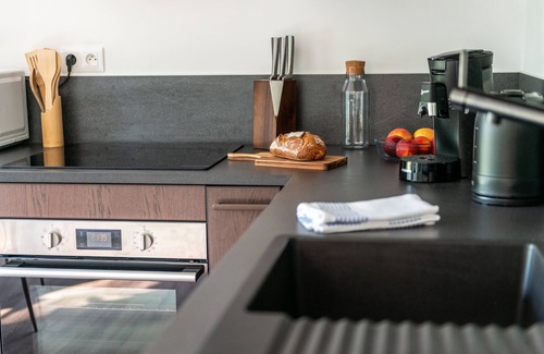 A living room, a dining area, a BBQ grill, and concierge services are featured at this 2-bedroom, 1-bathroom rental. Bathroom amenities include a hair dryer, towels, and toilet paper. Prepare a home-cooked meal in the kitchen, complete with an oven, a stovetop, and a refrigerator, as well as a coffee maker, an electric kettle, and a microwave. And because there's access to laundry facilities, you can go a bit lighter on your packing.