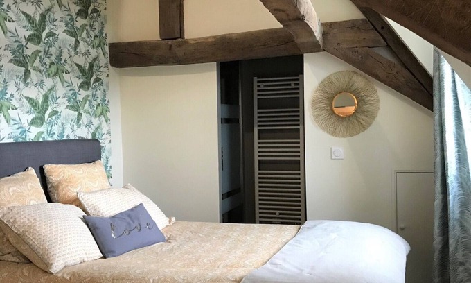 In a 18th century mansion in the heart of the historic center of Dinan, the nest hidden under the eaves awaits your arrival. You will feel safe from regrads, nestled under the roofs, as alone in the World.