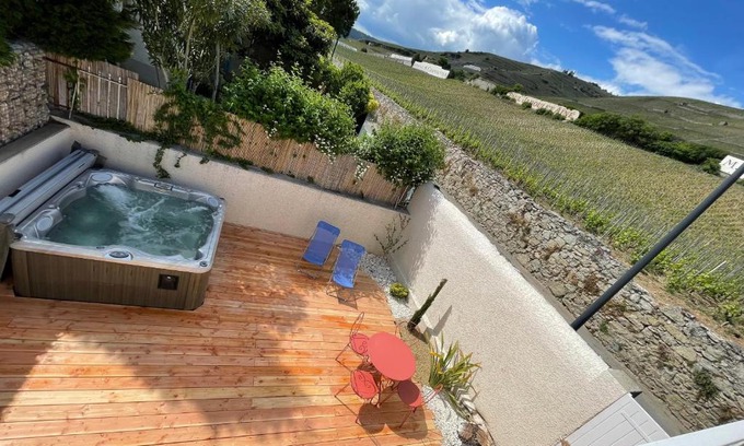 Best-rates for the Tain-l'Hermitage house starts from $153 per night with includes Internet, Air Conditioner, View, Security/Safety, Guest Services, Parking, Balcony/Terrace, Wellness Facilities, Spa, Barbecue/Outdoor Cooking, Child Friendly, Hot Tub with all other amenities. Perfect for Weddings is committed to ensuring every guest experiences a comfortable and extraordinary stay, whether planning a romantic getaway, a honeymoon, a pet-friendly stay, or celebrating with the entire wedding party.