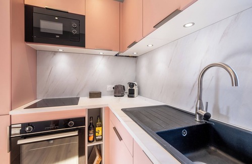 Prepare a home-cooked meal in the kitchen, complete with an oven, a stovetop, and a refrigerator, as well as a coffee maker, an electric kettle, and a microwave. Bathroom amenities include a hair dryer, towels, and toilet paper. And there is a laundromat nearby so you can pack a bit lighter. Other amenities at this 2-bedroom, 1-bathroom rental include bed sheets, a desk, an ironing board, and housekeeping.