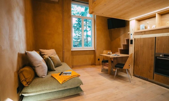 Beautifully and cleverly designed, this studio combined everything you need to enjoy your stay in Alsace. 160x190 cm high-quality bed is hanging above the clouds on a wooden platform to offer a cosy and comforting environment.