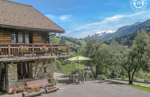 Gite in the owner's House. Ground floor: lounge, kitchen, Wifi connection, 2 bedrooms (1 bed 2 p 160 x 200, 1 bed 1 p / 1 bed 2 p 160 x 200, 1 bed baby), bathroom (shower). Terrace + field + 1 carport. Ski Flumet binding space diamond 2, 5km Notre Dame de Bellecombe 5 km, Megève 12 km. Landscaped water plan Flumet 2 km. Superb Alpine of 1915 renovated chalet, located in full prairie and forest edge. South hillside. Very good comfort. Warm and pleasant. Spacious. Light. Quality equipment. Wide terrace. Well equipped outdoor space. Unobstructed view of the massif and Mont Blanc.