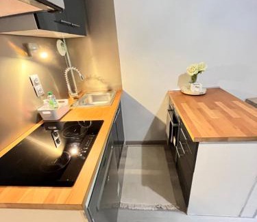 Le Petit Chalet Addicted to Paradise is located in Tignes, just 2.9 miles from Tignes/Val d'Isère and 3.5 miles from Tignes Golf Course. This property offers access to a balcony and free private parking. Guests can use a terrace. The apartment includes 2 bedrooms, a fully equipped kitchen with a dishwasher and a fridge, as well as a coffee machine. Towels and bed linen are offered in the apartment. The property has an outdoor dining area. A mini-market is available at the apartment. Ski-to-door access and ski storage space are available at the apartment, and guests can go skiing in the surrounding area. Chambéry-Savoie Airport is 86 miles from the property.