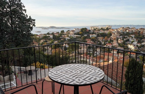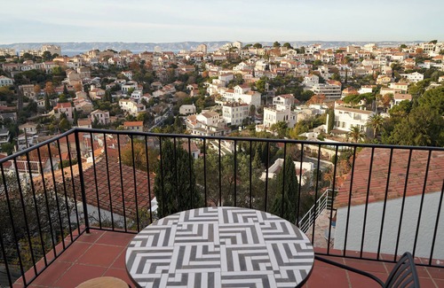 Located in the Roucas Blanc area of Marseille, this luxurious house boasts 2 delightful bedrooms with en suite shower and WC. Roucas Blanc is on a hill, hence the amazing views of the sea, the iconic church, La Bonne Mère and the valley. You can wander down to the beach directly via the charming staircases, it takes between ten and fifteen minutes. The house is fully equipped with AC, WiFi, sound system, coffee machine, kitchen equipment, a pizza oven and a separate laundry area,. The garden is on two levels, set up for outdoor dining and lounging; guests can relax and unwind in style. There is an additional garden studio space with a single convertible bed and en suite shower and WC, it's perfect for a teen or an adult. Access to the house is via a staircase of 92 steps, making it suitable for people who are OK with stairs. Parking is about 200 m away on the street. Our place is equipped for both long or short stays to make your holiday one to remember.