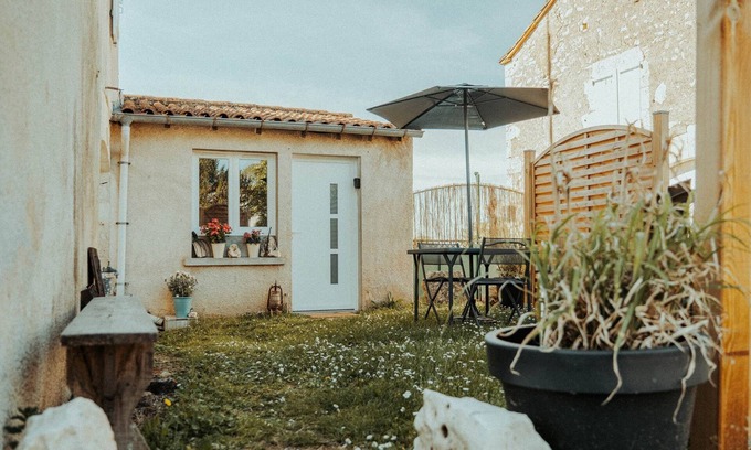 20 m² studio adjoining the owner's house: equipped kitchen area, space with a table and 2 chairs, double bed 140, television, electric heating, wifi access, shower room with toilet (shower, sink, toilet, heated towel rail). Private space of 24 m² with garden furniture, parasol, barbecue. Shared garden of 400 m² with sun loungers. Possibility to park in front of the cottage in the car park.