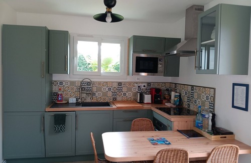 Located in Échiré, the holiday home Le Petit Marais is a semi-detached house equipped with everything you need for a relaxing family holiday. The 55 m² property includes a living room, a kitchen, two bedrooms, and a bathroom, accommodating up to 6 people. Additional amenities include Wi-Fi, a television, air conditioning, and a washing machine. A baby cot and a high chair are also available.