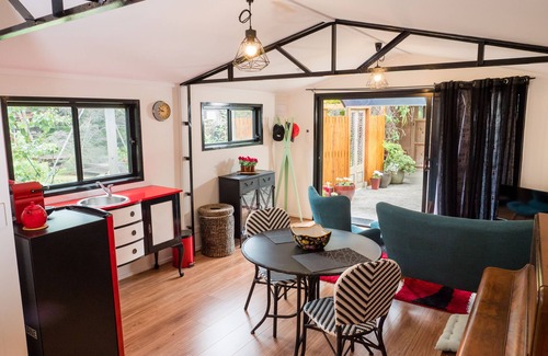 Le Petit Palais du Port is a charming cottage in the heart of the small bayside town of Portarlington along the Bellarine Peninsula. It is set in a pretty private courtyard within the lovely garden of the neighbouring house. The studio has a QS bed and stylish ensuite behind a Shoji screen sliding door. The kitchenette is well-equipped with a decent sized fridge (for bottles of local wine, cheeses, mussels, oysters, smoked salmon and more), Nespresso coffee machine, microwave, electric wok and Weber BBQ in the courtyard. There is a reverse cycle air-con for heating & cooling. There is free wi-fi. The lounge area has a smart TV with Netflix and retro Grant Featherstone 60’s lounge chairs… plus a piano for the musically inclined. Upon your stay, you will be greeted with a chilled bottle of Terindah sparkling wine, and chilled champagne glasses, in the fridge. You can even select between the Terindah Estate Methode Traditionnelle or Sparkling Pinot Noir. If you prefer still wine, there is also a choice of a Terindah Pinot Noir, Rose, Chardonnay or Pinot Gris. Plus, gourmet chocolates from Great Ocean Road Chocolaterie.