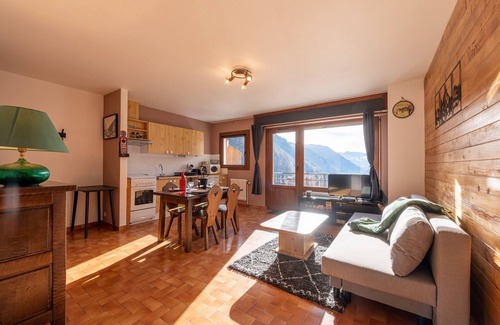In La Giettaz, we offer you this charming 40 m² apartment with mountain view, which can accommodate up to 4 guests. Located on the 4th and top floor, it comprises a large living room, a fully-equipped kitchen, a bedroom and a bathroom. Wifi, sheets and towels included.