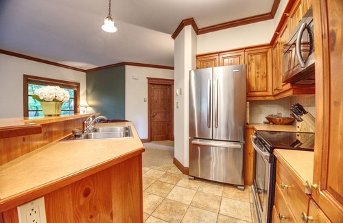 While you're here, you can enjoy all the comforts of home and more, including a seasonal outdoor pool and a full-sized refrigerator/freezer, as well as an oven and a stovetop. Other amenities include towels, a DVD player, an electric kettle, and kitchenware and utensils.