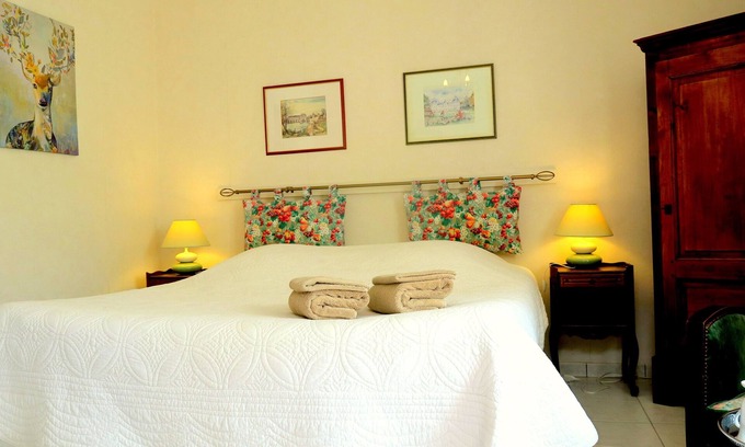We welcome you in our old wine farm of the eighteenth century, restored in respect of old stones and the concern for comfort. The rooms, tastefully decorated, include all bathrooms and private bathrooms. Sunny, they are on one level, open on the flowery courtyard.