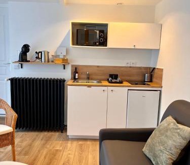 Le Quarante cinq -5 offers accommodations in Laval, 27 miles from Solesmes Abbey and 4.5 miles from Laval-Changé Golf Course. Guests staying at this apartment have access to a terrace. Vitré Castle is 26 miles away and Rochers-Sevigne Golf Course is 28 miles from the apartment. With free Wifi, this 1-bedroom apartment features a flat-screen TV and a kitchenette with a microwave and toaster. Towels and bed linen are available in the apartment. The property has an outdoor dining area. Sable-Solesmes Golf Club is 29 miles from the apartment. Rennes–Saint-Jacques Airport is 51 miles from the property.