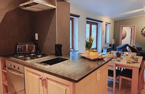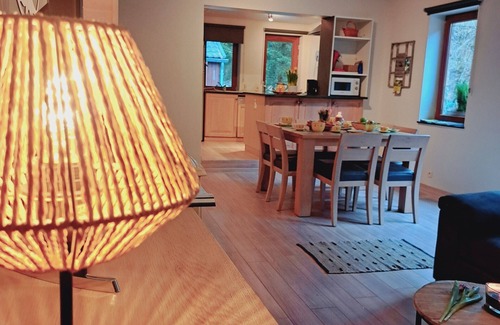 This gîte offers you a total change of scenery thanks to its location in the heart of the Ardennes forest, along a stream "Le Ri de Vâ". Access this little corner of paradise via a small stone path.